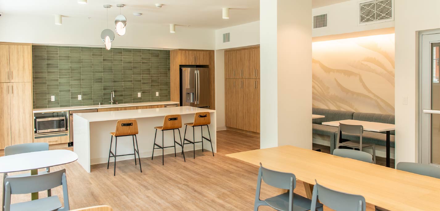 morley_admin July 17, 2025July 17, 2025 Communal kitchen at the Miramar Development apartment complex
